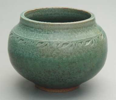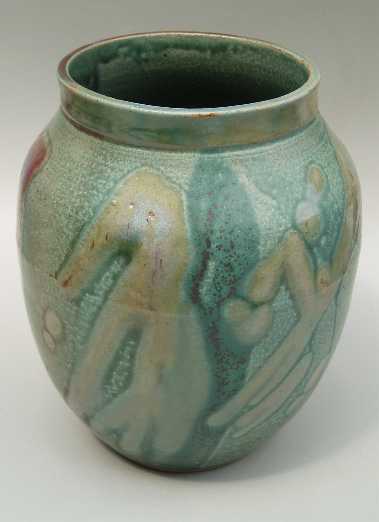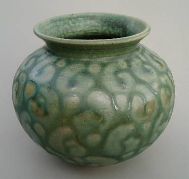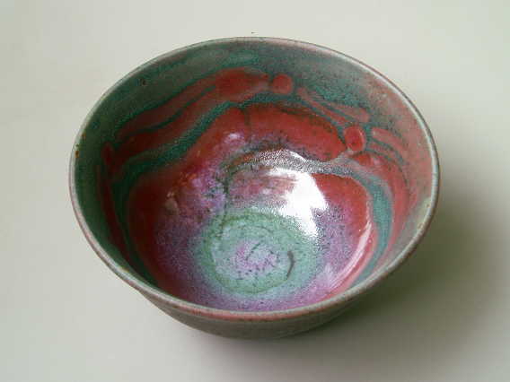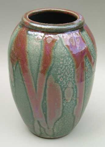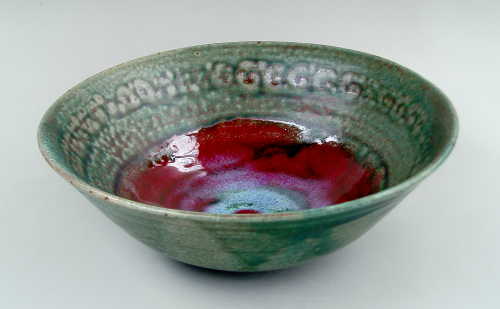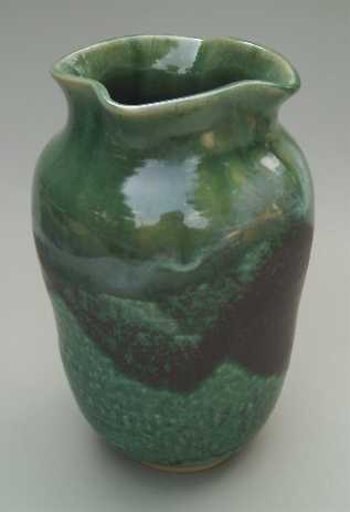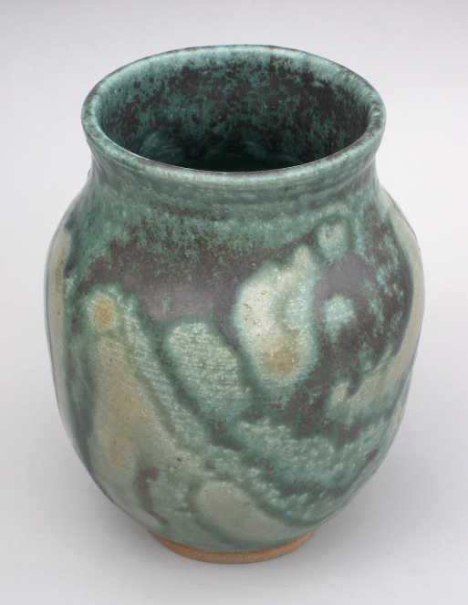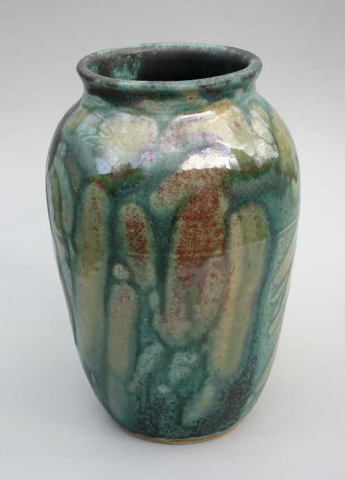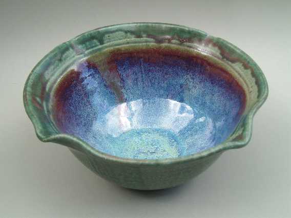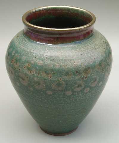 My green glazes are based on copper and zinc. I use it alone as well as in combination with other glazes. The sometimes subtle and other times colorful results fascinate me, especially in the way the kiln's atmosphere affects the results, sometimes bringing a faint blush of pink, and other times an explosion of color with reds, blues, and golds.