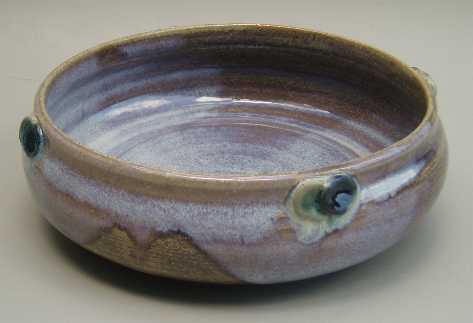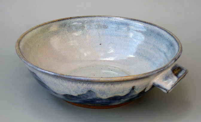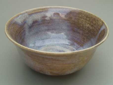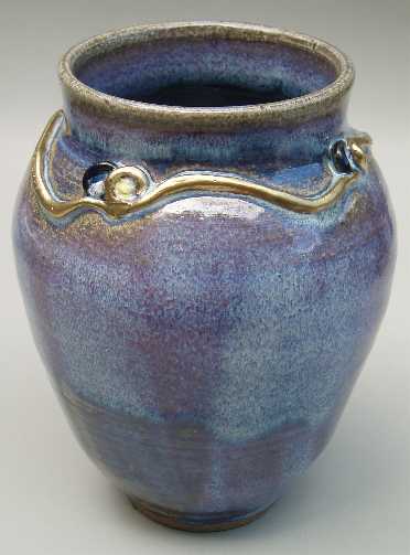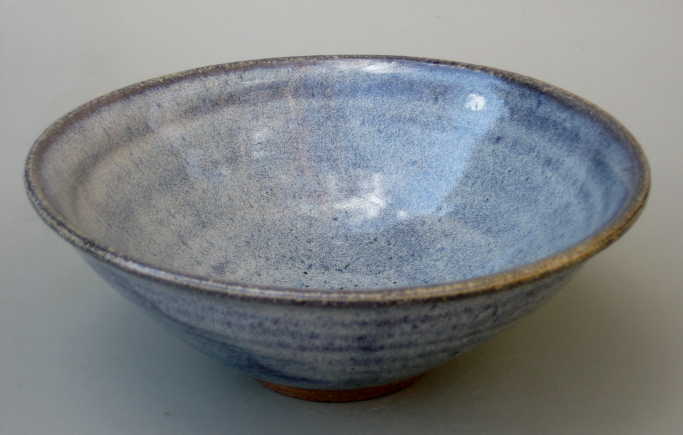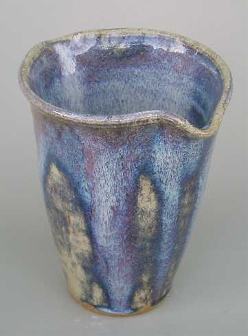 The Rutile Blue glaze I use offers a lot of variety. The glaze is very sensitive to the thickness of the application, and even more sensitive to the kiln's atmosphere. The nature of the Rutile Blue glaze is to provide a mottled surface ranging from milky blue to lavender, with white, tan, grey, and black streaks. So, the glaze is predictably unpredictable, providing a beautiful array of color.